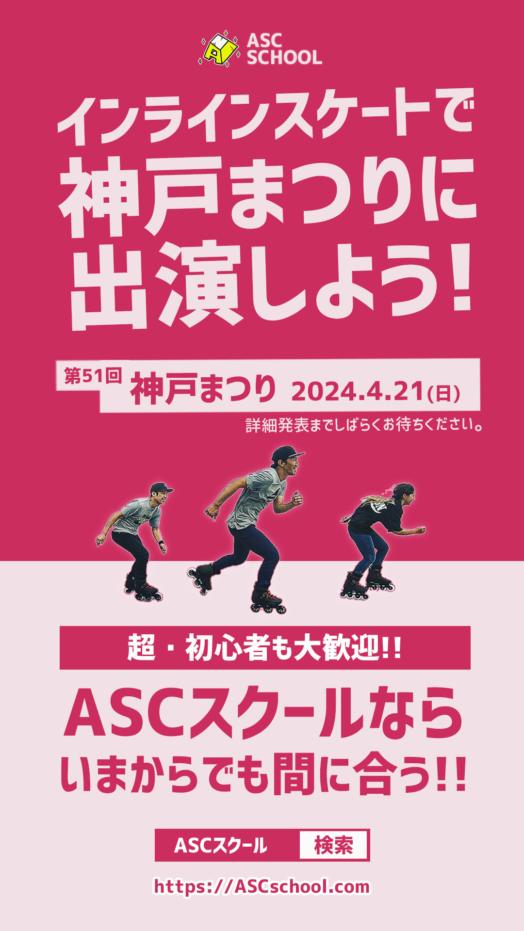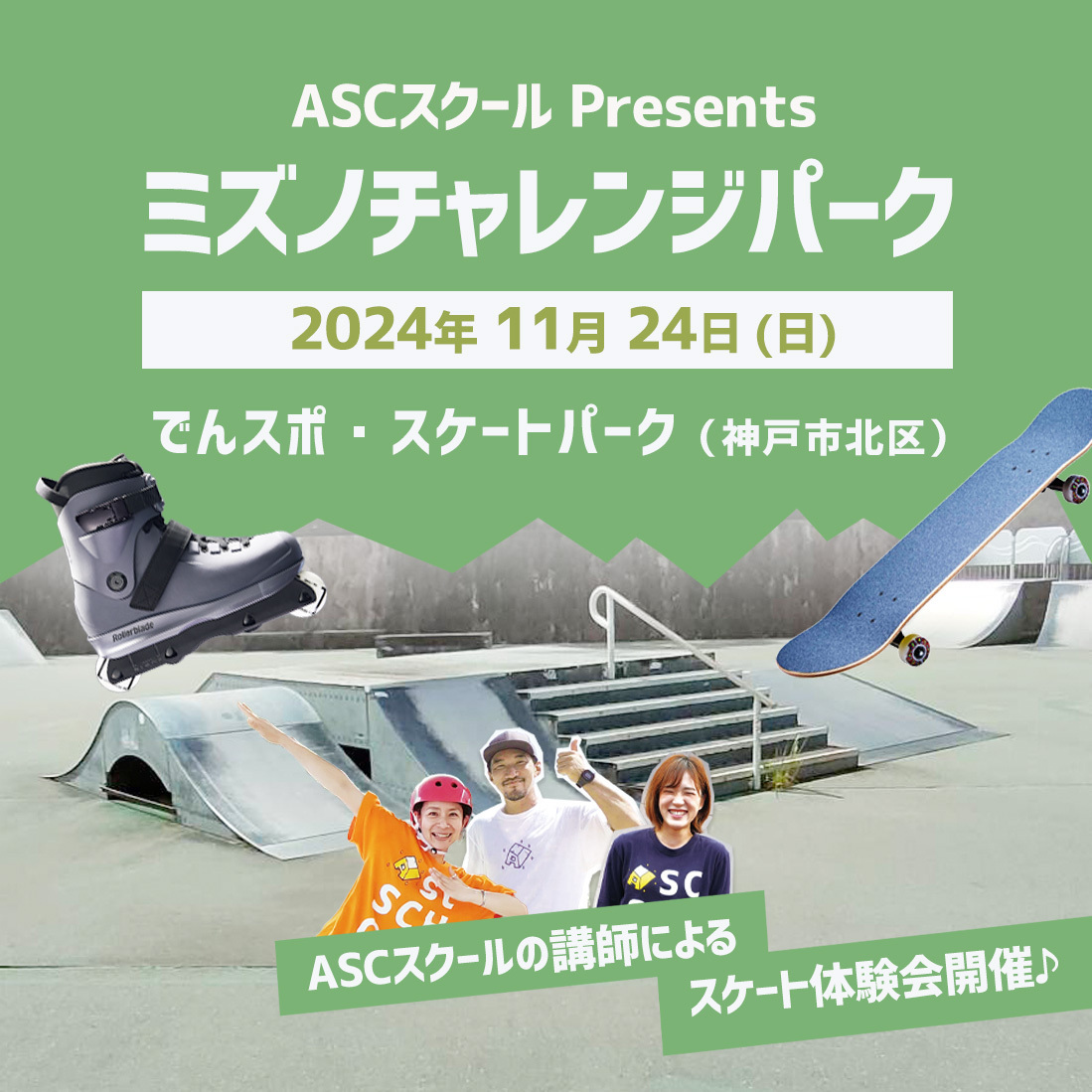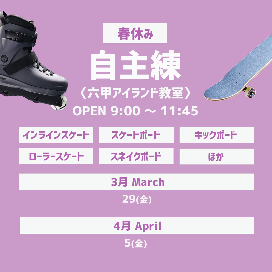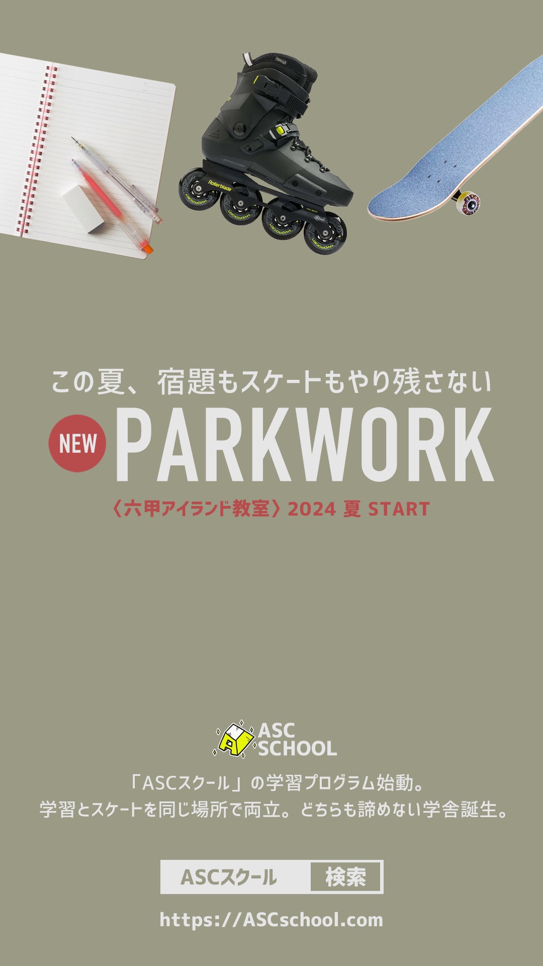 六甲アイランドのアイランドセンター駅を下車すると目の前に「イベント広場」が広がります。ここの広い敷地を活かして、"スケートクロス"などに特化したASCスクールの特別なプログラムを楽しんでいただけます。