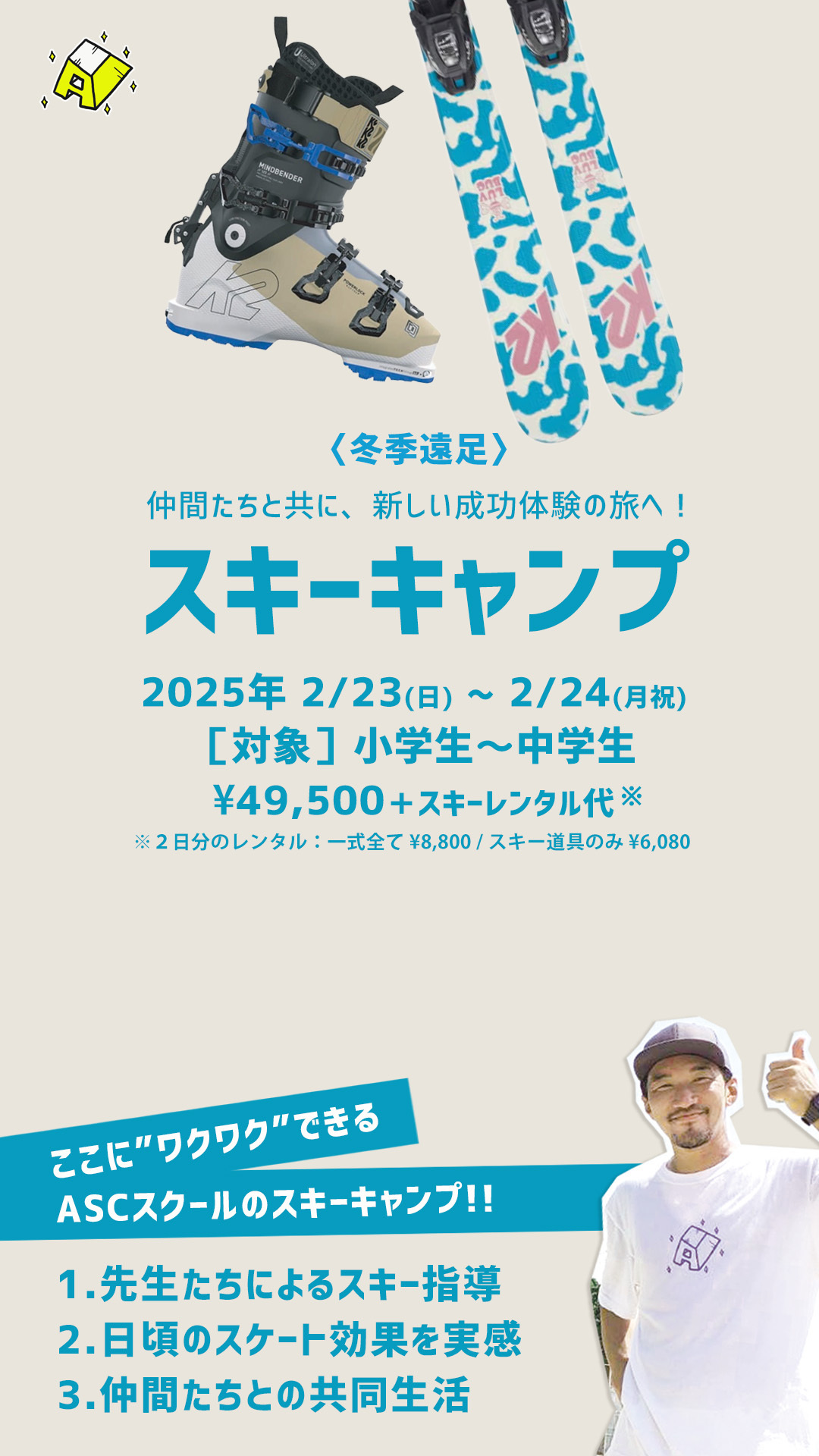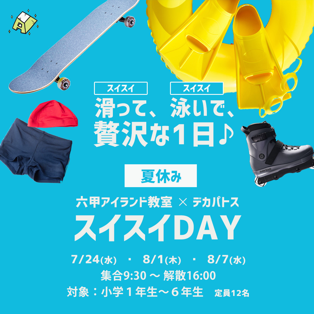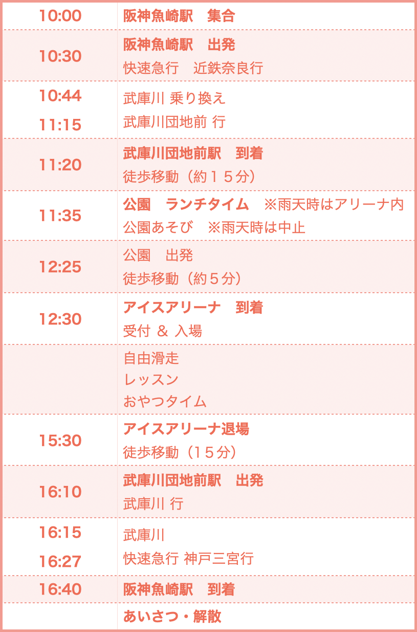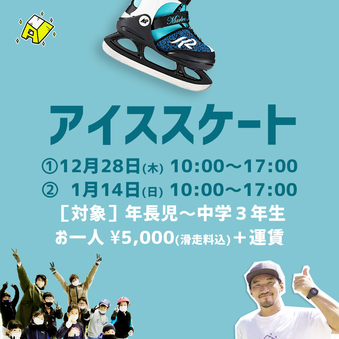 スケート道具、水着・水泳キャップ・お弁当・水筒・タオル・着替え(必要に応じて)