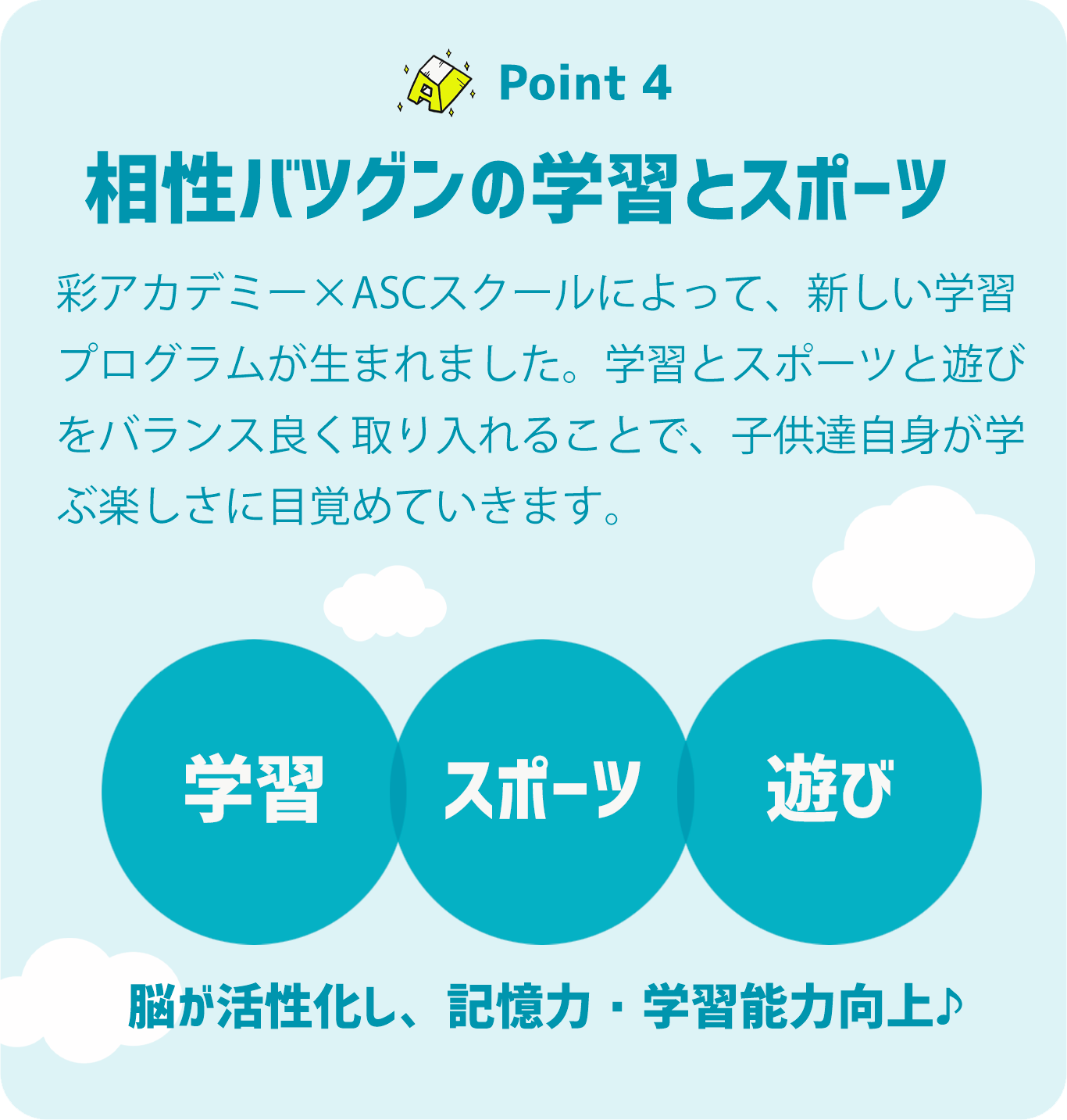 西宮に塾を構える、個別進学塾「彩アカデミー」とASCスクールによる本格学習プログラムです。小・中ともに、内田先生の独自の"学ぶことを楽しませる指導"により、学校とは違ったアプローチによって学習を楽しみながら理解力を高めて実力を伸ばせます。勉強の必要性は?正しい勉強方法とは?といった疑問もスッキリ解決させよう!